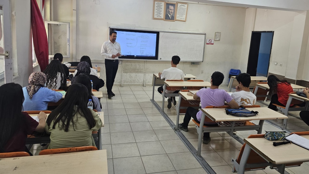 1 Eşit Ağırlık, 2 Sayısal olmak üzere 3 sınıfta Matematik, Fizik, Kimya, Biyoloji; Edebiyat, Tarih ve Coğrafya dersleri ile DYK’lara başladık. 12. Sınıfa geçen öğrencilerimizin yoğun ilgi gösterdiği kursta 08.30-13.20 saatleri arasında haftanın ilk 4 günü dersler işlenecektir. Her Cuma günü de deneme sınavı yapılması planlanmaktadır. Okul idarecileri ve rehber öğretmenlerimizin de refakat edeceği kurslarımızla öğrencilerimizi 2026 YKS maratonuna hazırlıyoruz. 8 hafta sürecek kurslarımız 28 Ağustosta sona erecektir. Öğrenci ve velilerimizin destek verdiği kurslarımızın okul ve öğrencilerimize faydalı olması temennisiyle…